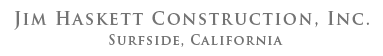 Jim Haskett Construction, Inc. P.O. Box 512 Surfside, CA 90743 CA License 738498